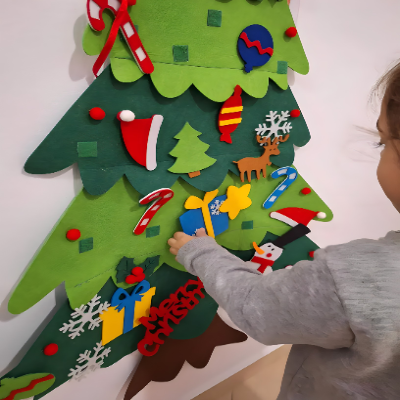 Αντί για το κλασικό χριστουγεννιάτικο δέντρο και το άγχος με τα εύθραυστα στολίδια, τα παιδιά κρεμούν, αφαιρούν και μετακινούν τα στολίδια όποτε θέλουν. Όλα είναι μαλακά, ασφαλή και σχεδιασμένα για παιδικά χεράκια, ώστε η γιορτινή ατμόσφαιρα να δημιουργείται μέσα από το παιχνίδι, το γέλιο και τις κοινές στιγμές.