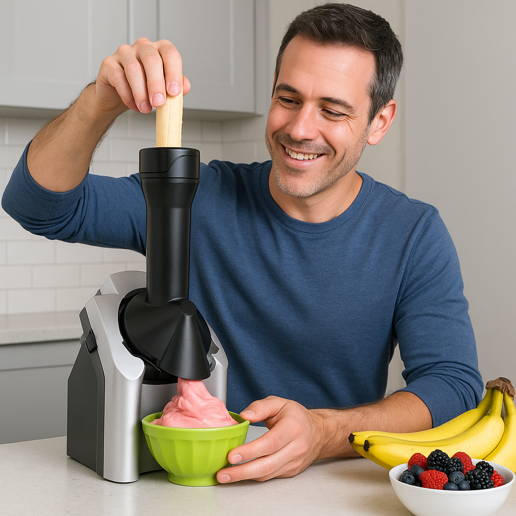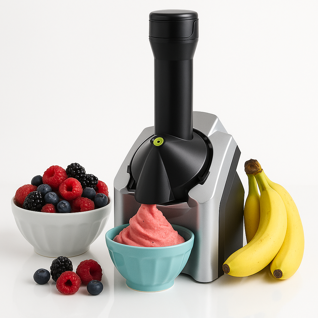 Απλά καταψύχετε τα αγαπημένα σας φρούτα, τα βάζετε στη συσκευή και σε λίγα δευτερόλεπτα απολαμβάνετε ένα κρεμώδες και υγιεινό παγωτό.