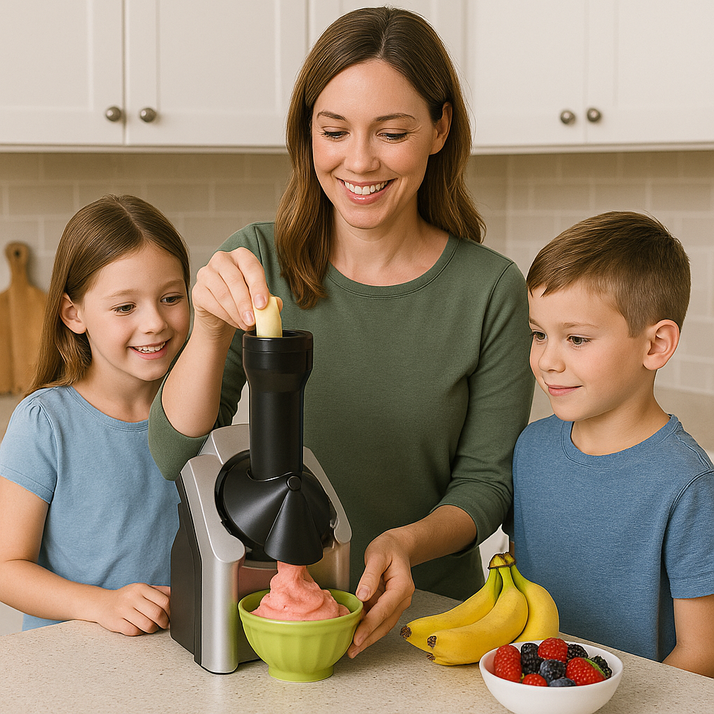 Ετοιμάζετε εύκολα και γρήγορα παγωτό στο σπίτι, απολαμβάνετε δημιουργικές στιγμές με την οικογένεια και εμπλουτίζετε τη διατροφή σας με φυσικά, φρουτένια επιδόρπια.